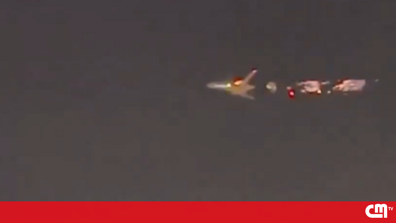 Testemunhas junto ao aeroporto relatam que viram a asa esquerda do avião a arder.