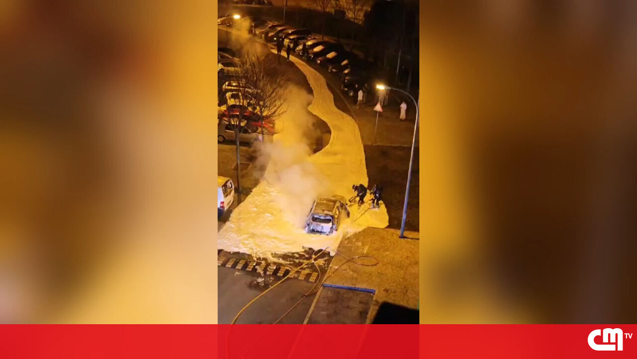 Carro totalmente destruído pelas chamas no bairro da Picheleira em Lisboa
