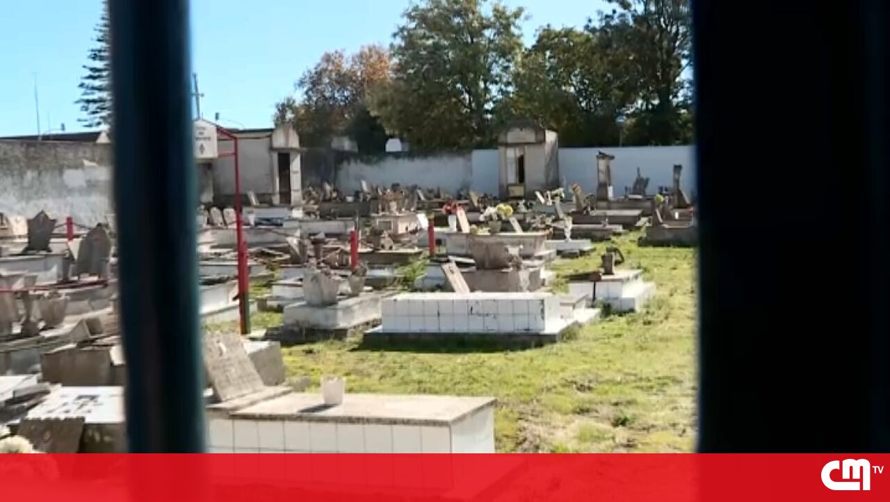 Cemitério vandalizado em Alhos Vedros com várias campas destruídas
