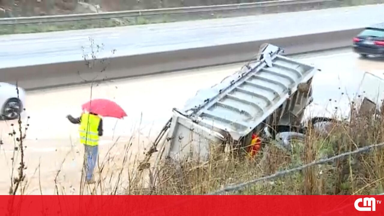 Camião despista-se e tomba na A22 em Loulé. Condutor ficou ferido