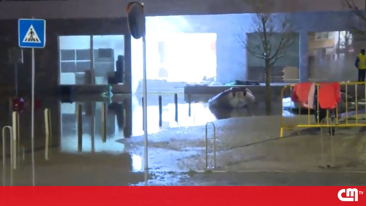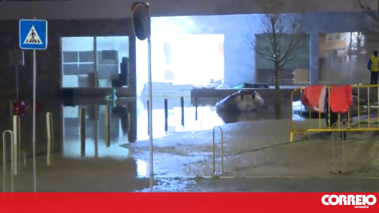 São os bombeiros e a Proteção Civil que, de barco, pelas ruas, vão prestando assistência à população depois da tempestade Kristin.