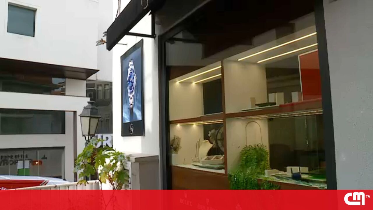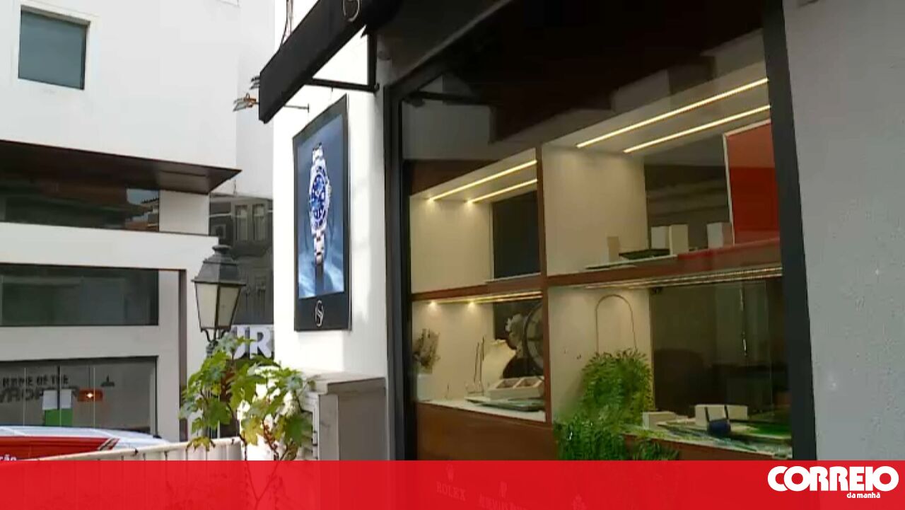 Assaltantes armados roubaram uma joalharia na rua Alexandre Herculano, em Cascais. PJ está a investigar.