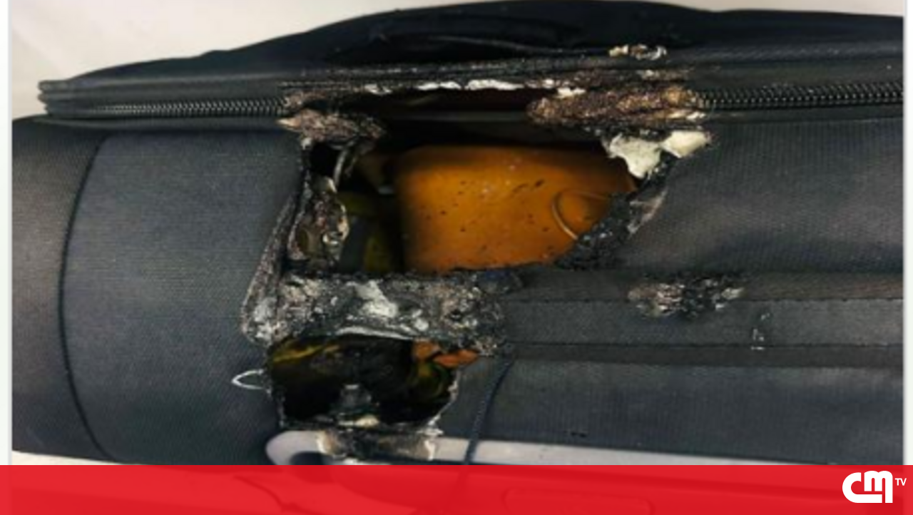 Pequeno aparelho entrou em combustão quando estava dentro de uma mala no compartimento da bagagem.