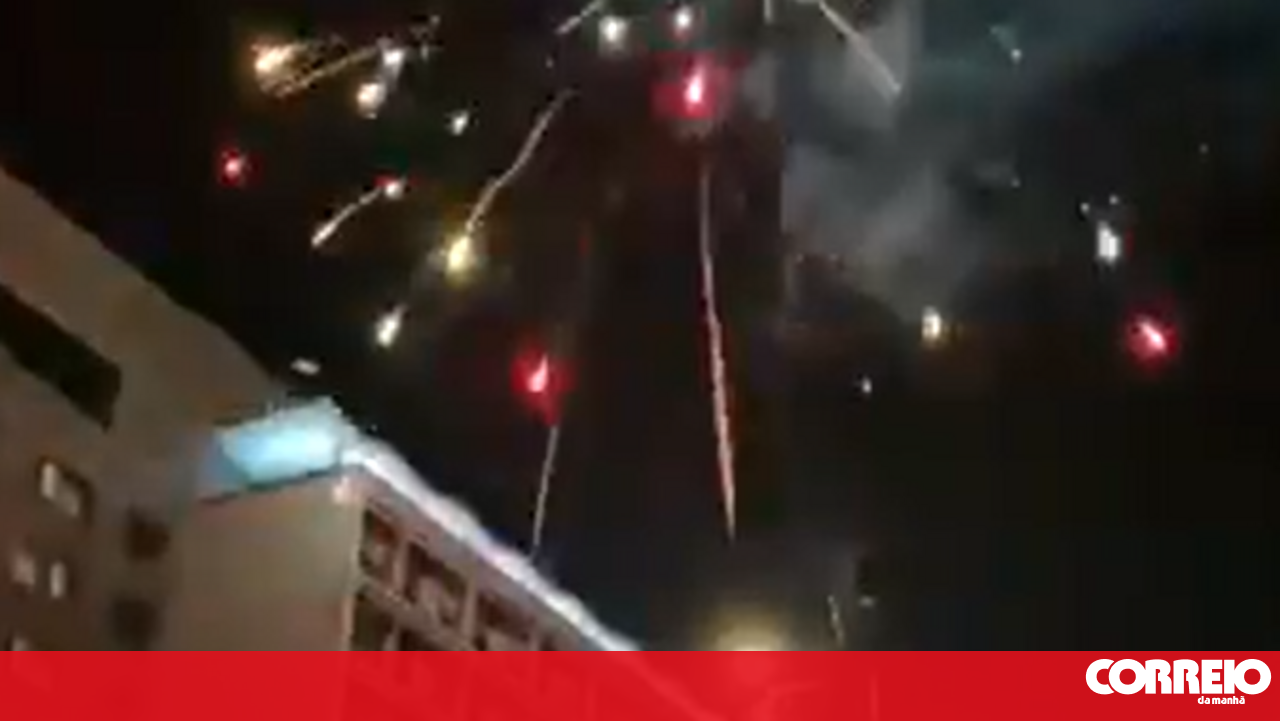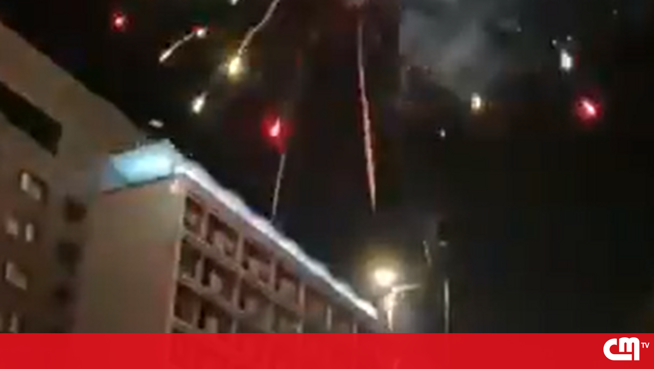 Adeptos do PSV lançam foguetes durante a madrugada junto ao hotel do Benfica