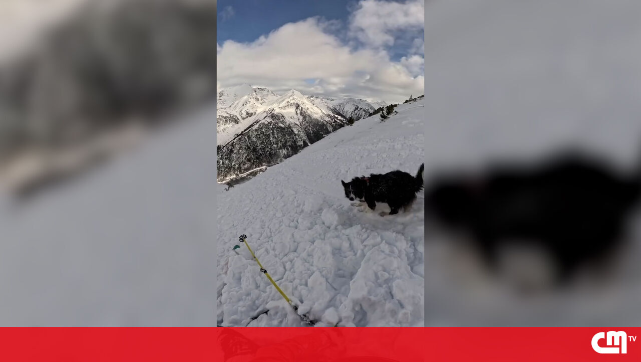 Imagens mostram o momento em que Ares Masip, uma esquiadora espanhola, é surpreendida por uma avalanche no Pic de l’Hortell, em Andorra, enquanto praticava esqui com o seu cão, Cim.