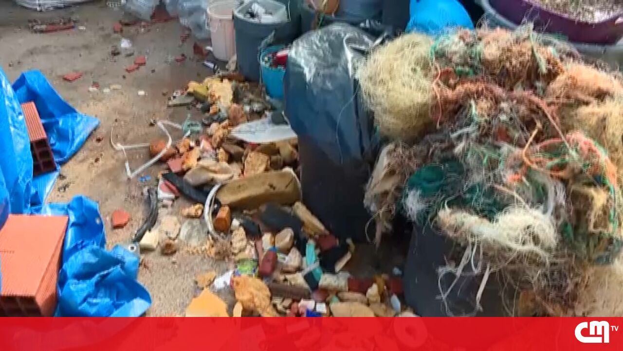 Armazém de organização de conservação do ambiente destruído pelo mau tempo em Peniche