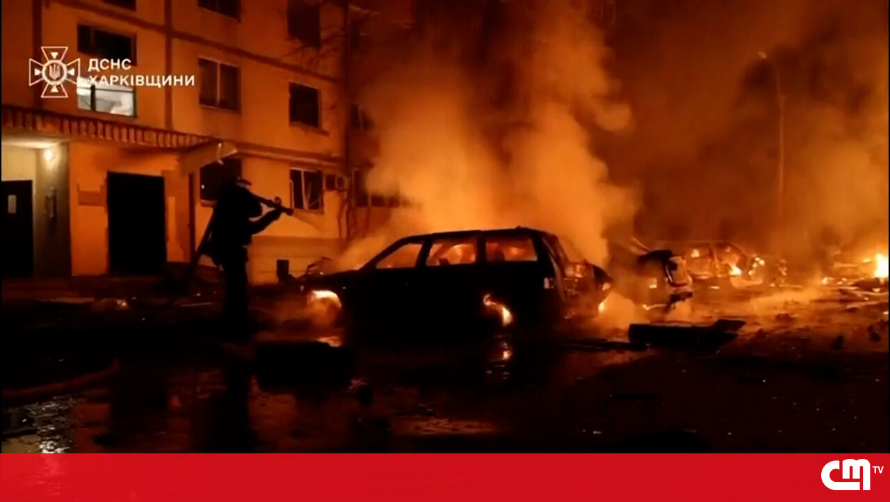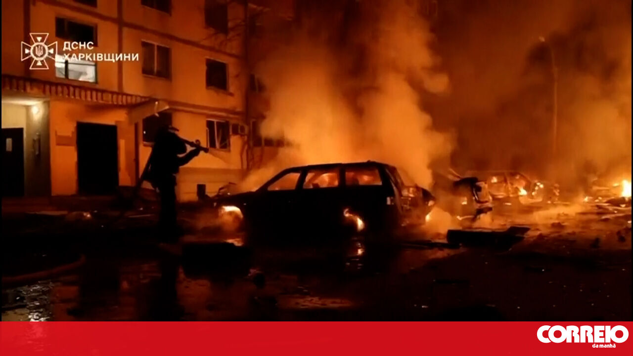 Um ataque com drones russos na cidade ucraniana de Kharkiv, na madrugada desta quarta-feira, fez pelo menos 40 feridos.