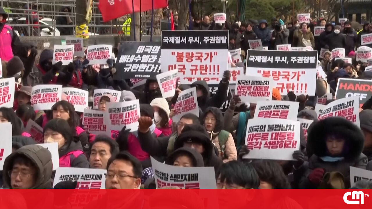 Cerca de uma centena de pessoas manifestaram-se em Seul, na Coreia do Sul, para condenar a recente operação militar de Donald Trump na Venezuela e exigir a libertação do presidente venezuelano, Nicolás Maduro. Os protestos acusam Washington de violar a soberania do país sul-americano.