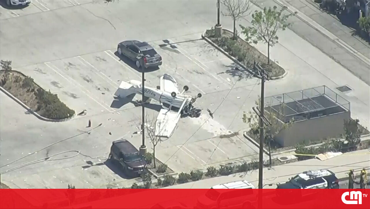 Uma avioneta despenhou-se, esta segunda-feira, num parque de estacionamento de uma loja de peças para automóveis em Los Angeles, EUA. O piloto, de 70 anos, ficou ferido com gravidade.