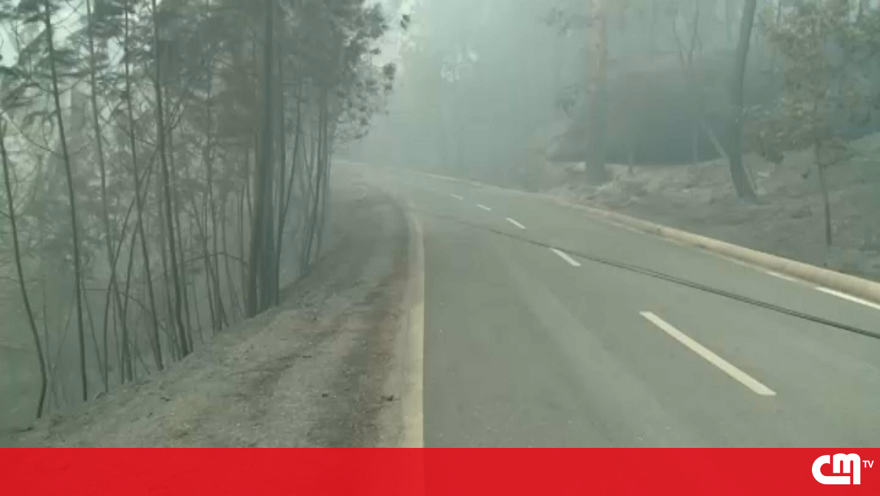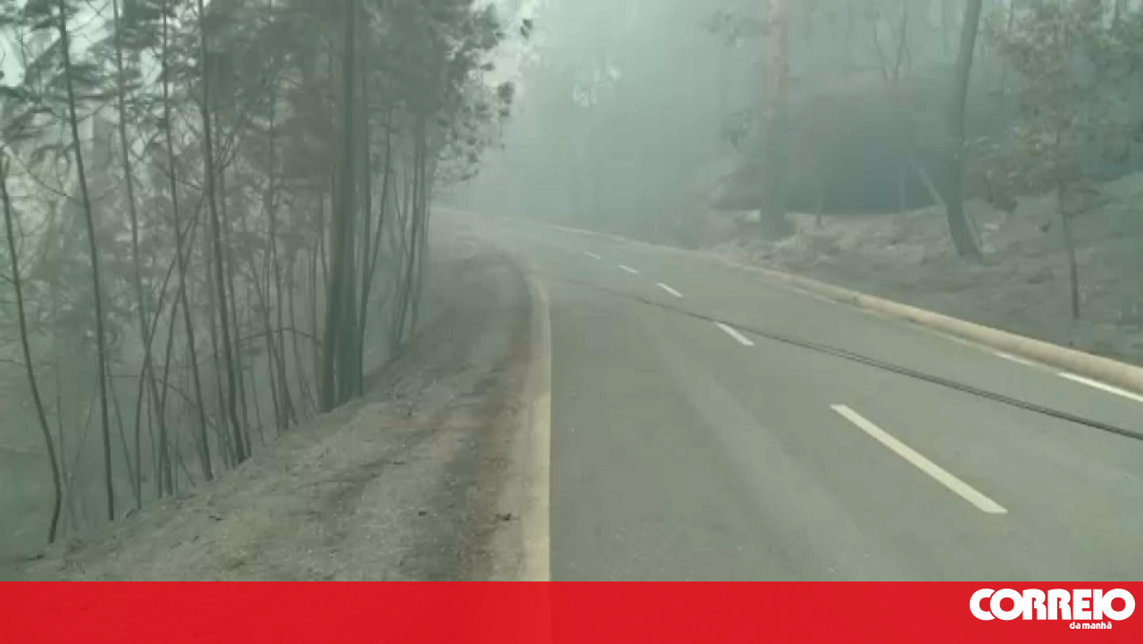 Cabos elétricos ardidos e espalhados pela estrada em Castro Daire