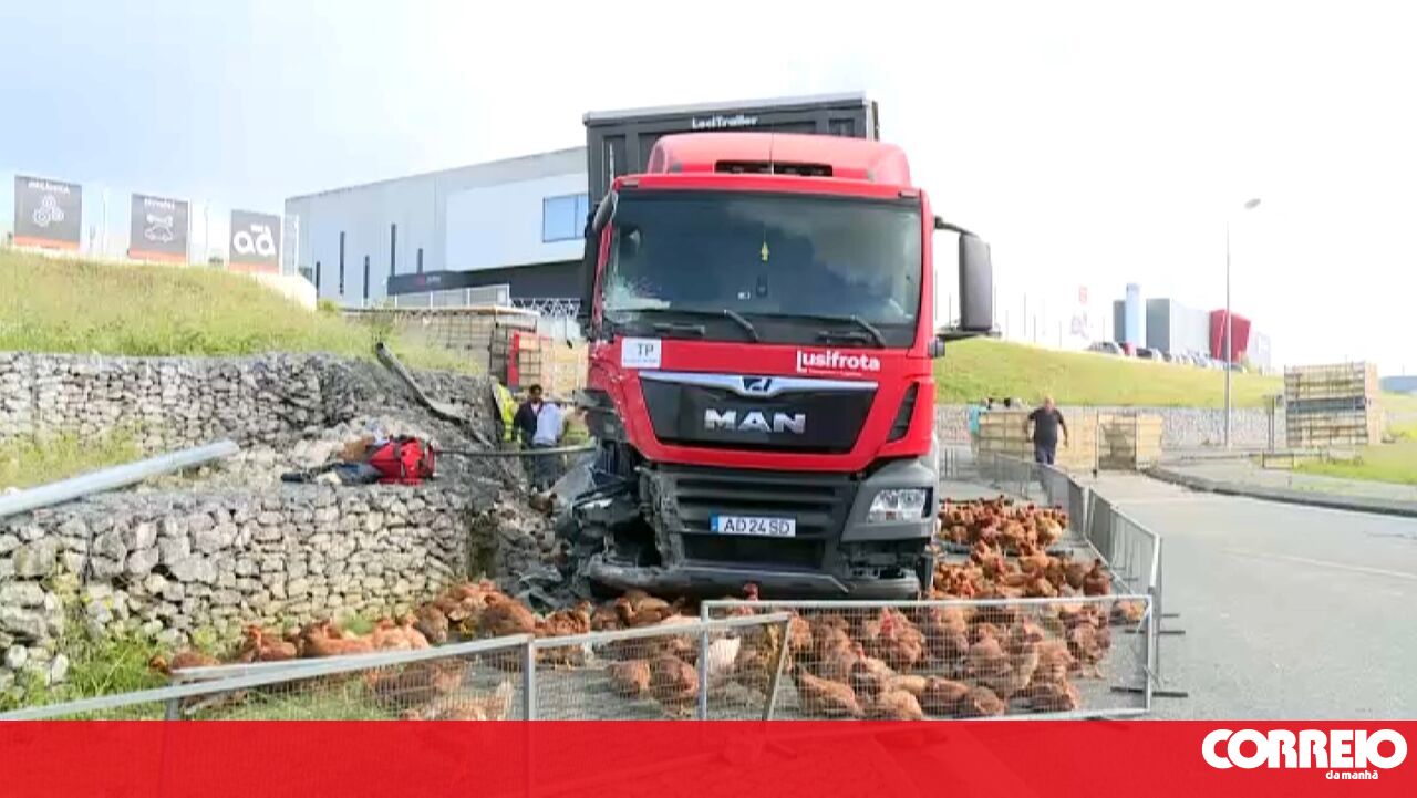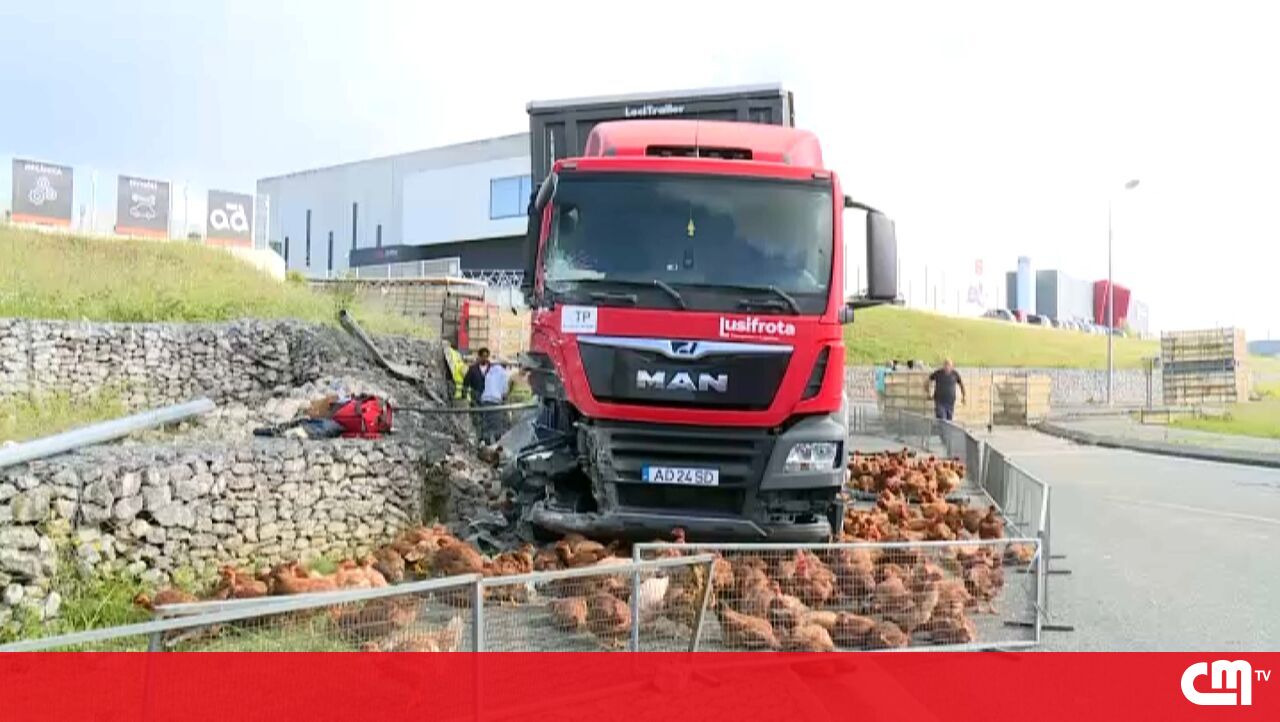 Camião que carregava galinhas embate contra muro em Montemor-o-Velho. Vários frangos soltaram-se