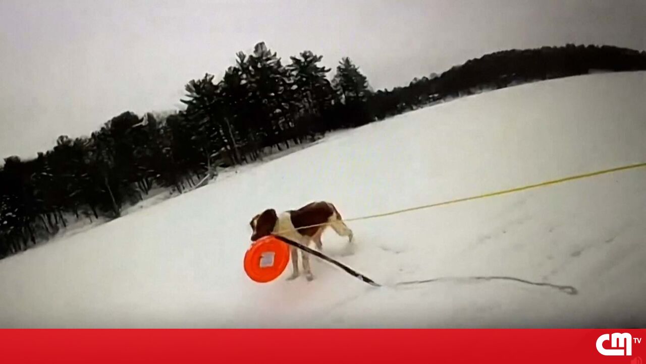 Um homem caiu num lago gelado no Michigan, nos EUA, e foi resgatado com a ajuda do cão, Ruby, que levou o ‘disco de resgate’ até ao dono para que este fosse puxado pela equipa de resgate.