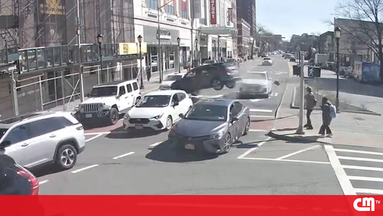 Carro descontrolado embate contra andaimes em movimentada rua de Nova Iorque