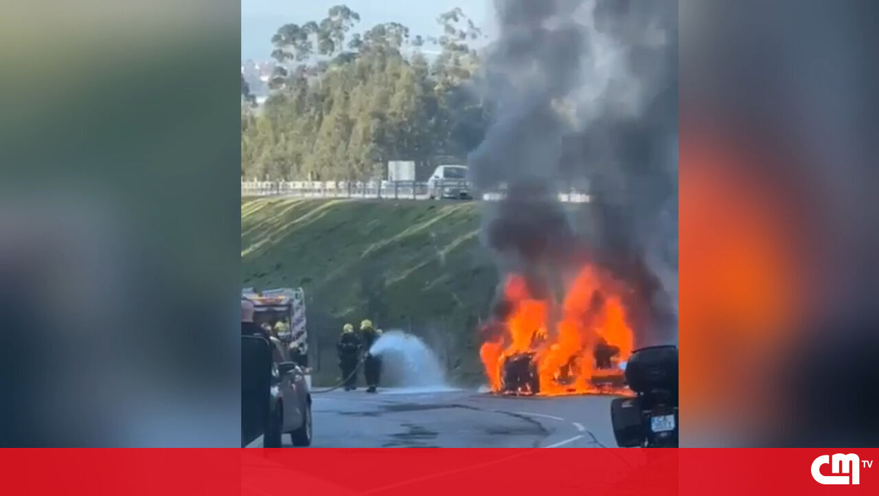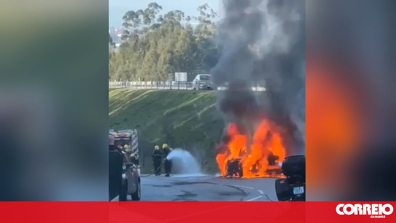 Carro totalmente destruído pelas chamas em Guimarães