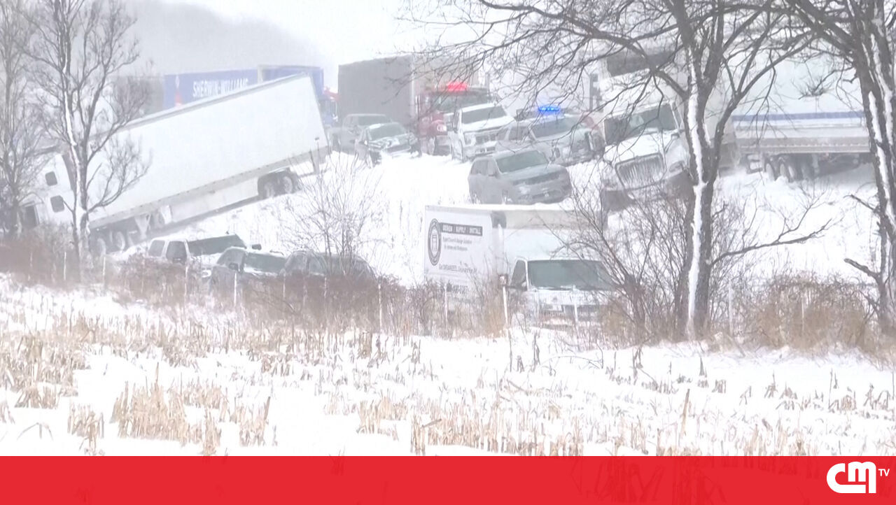 Carros danificados e cobertos de neve: Mais de 100 veículos envolvidos em colisão no Michigan