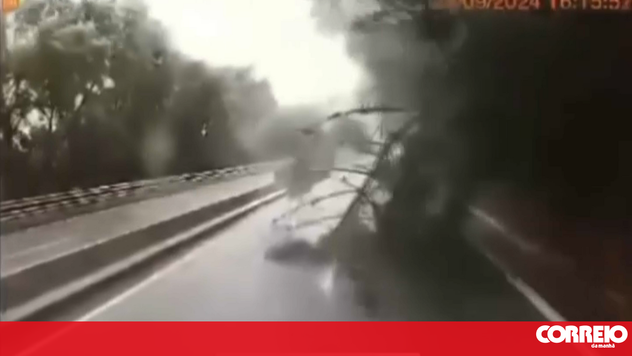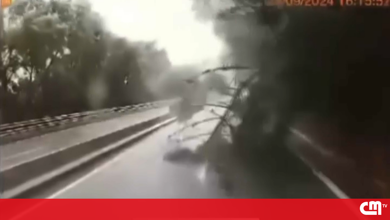Condutor capta momento em que árvore cai em plena autoestrada devido ao mau tempo em Coimbra