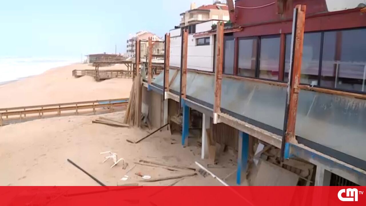 Depressão Kristin causa prejuízos na Praia do Pedrógão