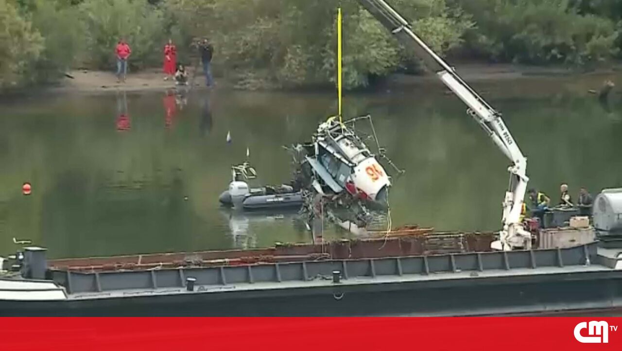 Destroços do helicóptero acidentado retirados do rio do Douro. Veja tudo em direto na CMTV