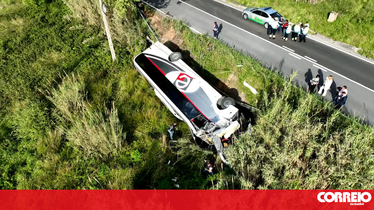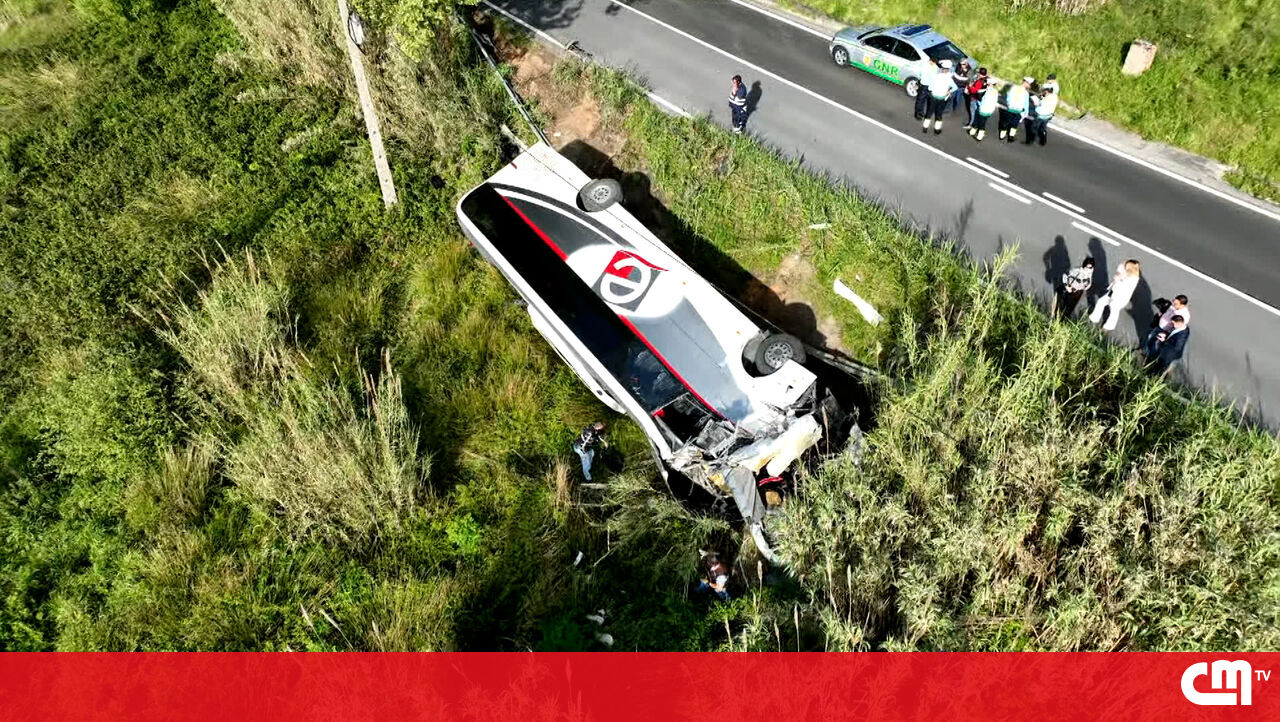 Destroços na estrada e viaturas tombadas: imagens de drone mostram aparato após acidente com autocarro no Cartaxo