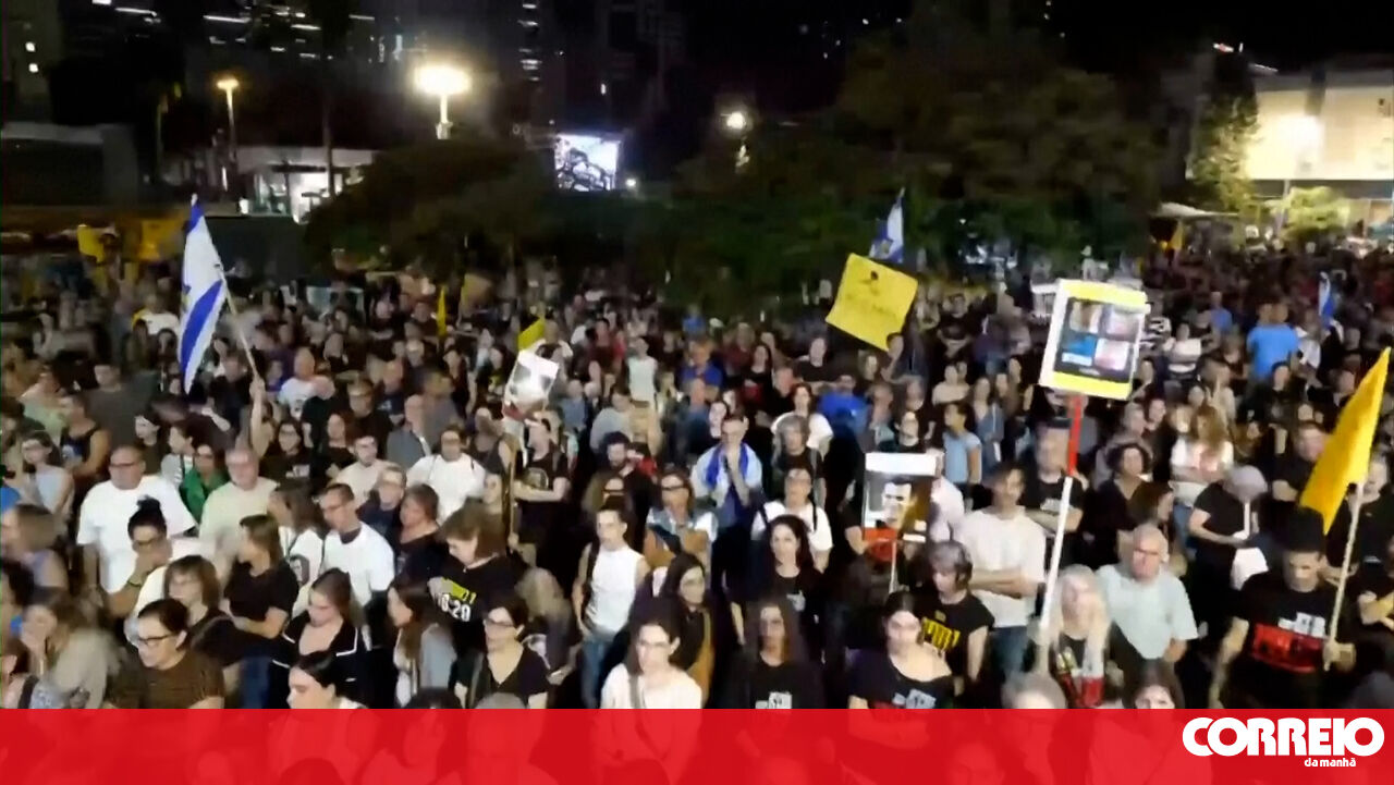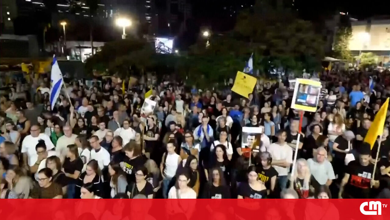 Na praça conhecida como Hostages Square, em Tel Aviv, familiares e apoiantes de reféns israelitas mortos reuniram-se esta noite para protestar e pedir que sejam entregues os corpos dos três membros ainda não devolvidos pela Hamas, desde o início do conflito.