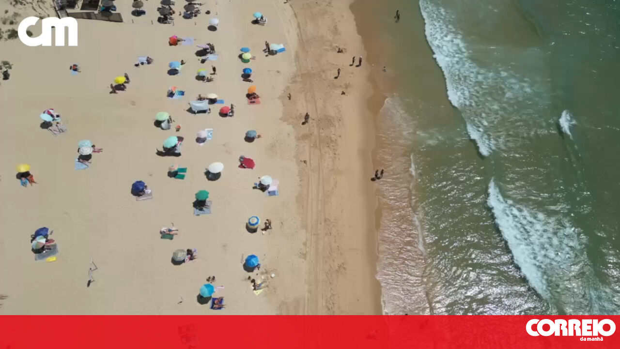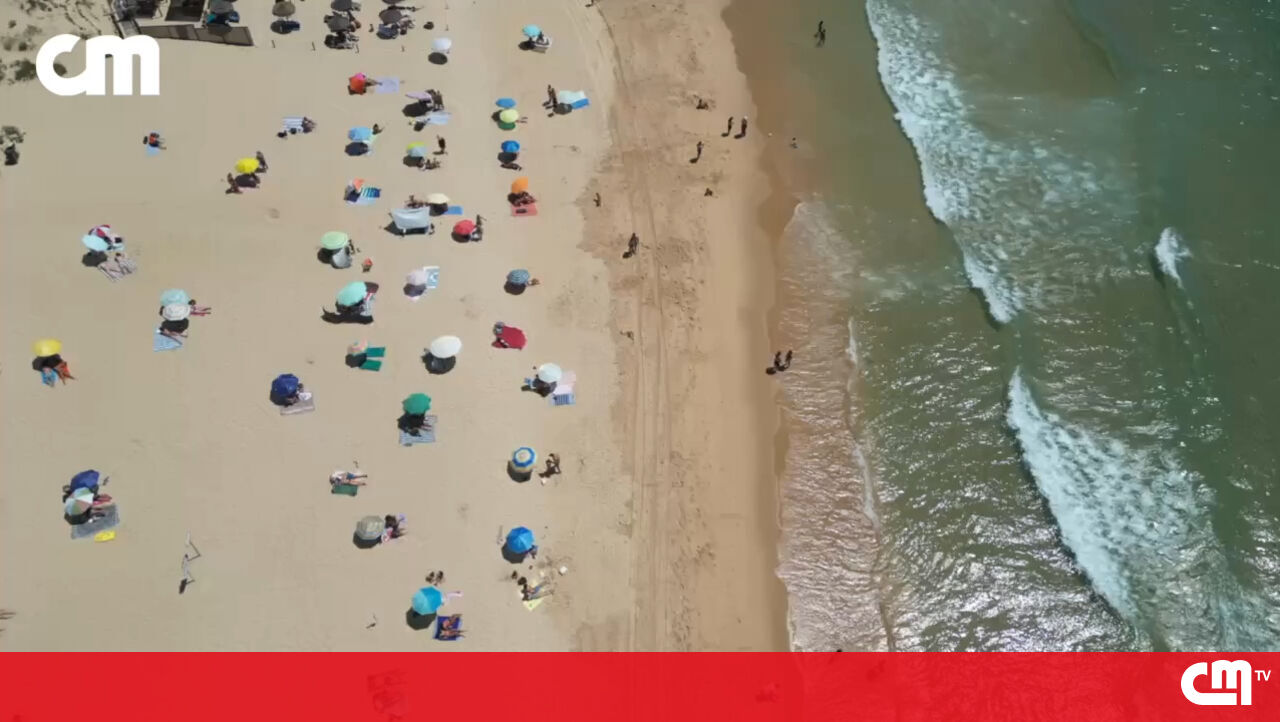 Fim de semana de calor: Imagens de drone mostram milhares de banhistas na Praia da Fonte da Telha em pleno mês de maio