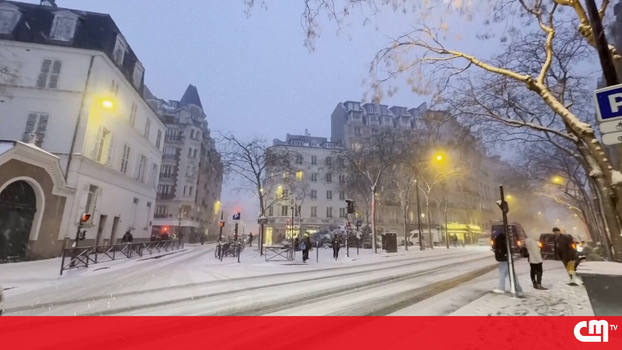 A capital francesa está coberta de neve, esta quarta-feira, o que tem provocado grandes atrasos nos transportes e levou ao cancelamento de voos nos dois principais aeroportos de Paris.