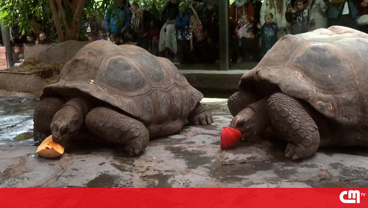 Os visitantes do Jardim Zoológico de Praga, na Chéquia, viram os animais a comer o fruto que representa a época mais assustadora do ano.