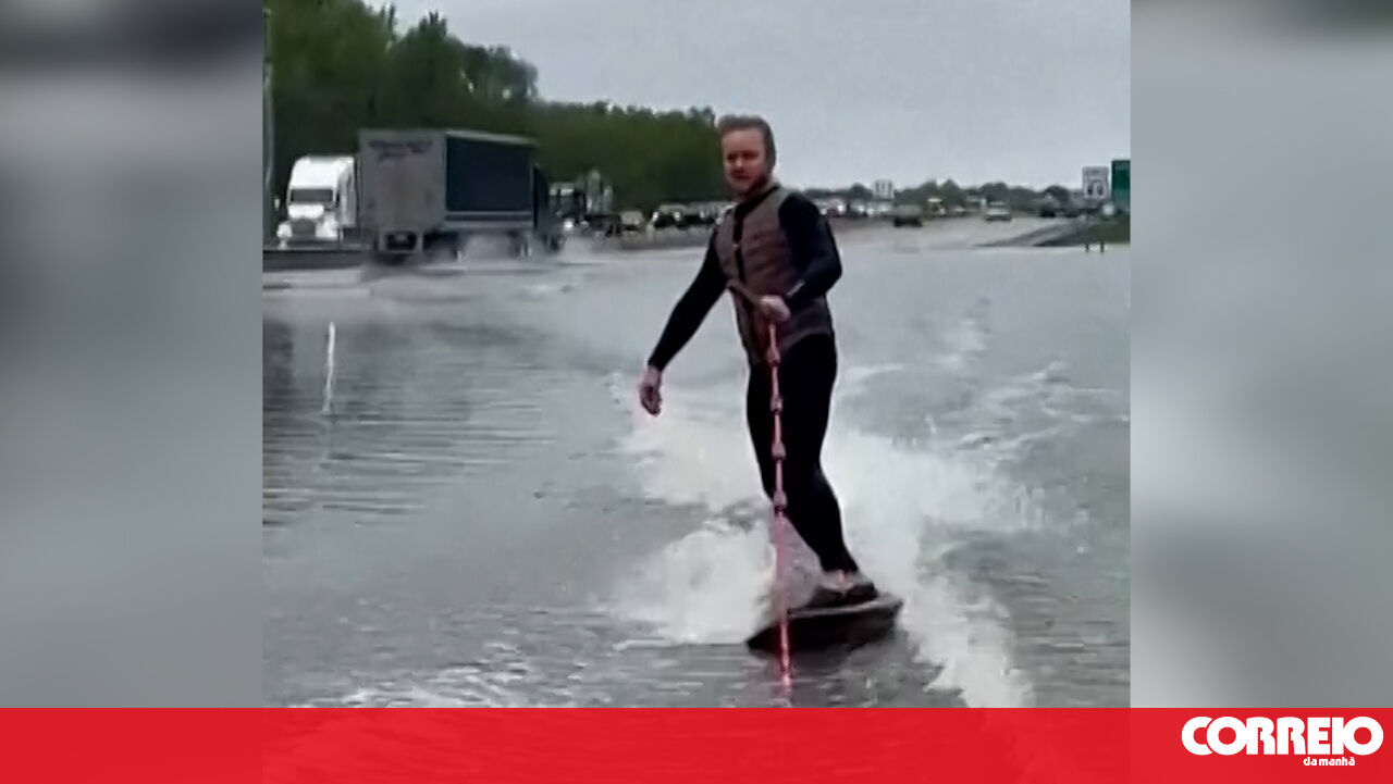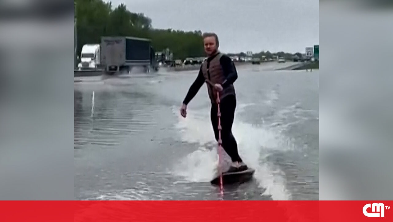 Homem aproveita autoestrada inundada para fazer wakesurf