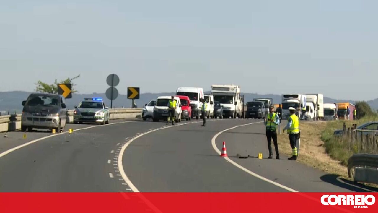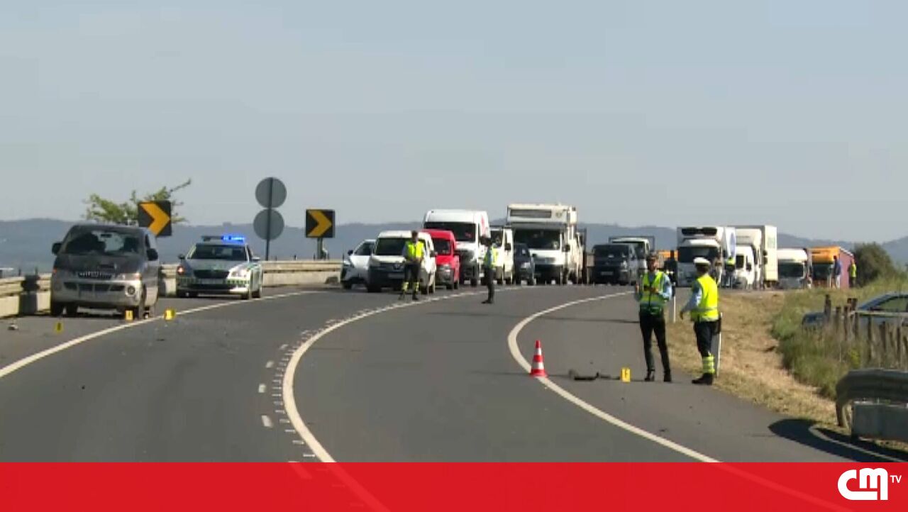 Vítima estaria debruçada sobre o vidro da porta, quando um veículo de mercadorias 'varreu' toda a lateral da sua viatura. Há um ferido leve a registar.