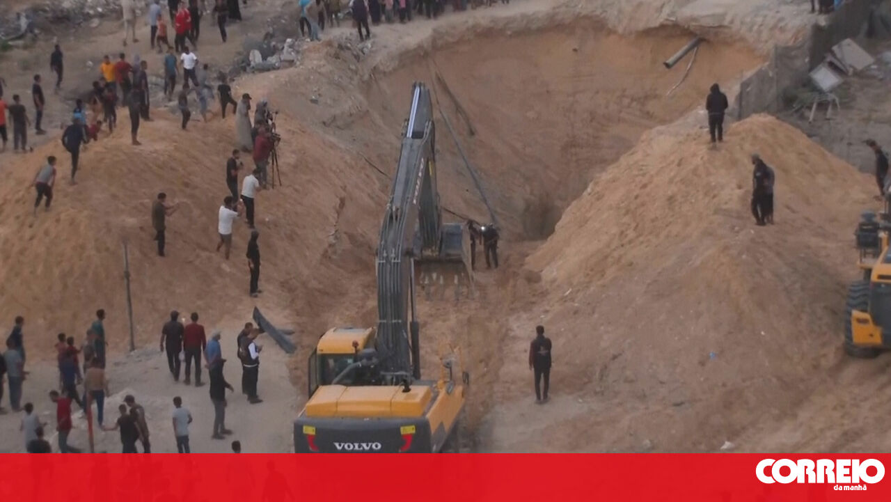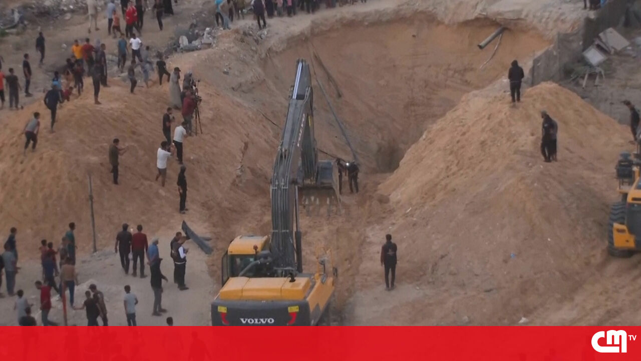 Imagens capturadas, esta terça-feira, mostram supostos restos mortais humanos encontrados na cidade da Faixa de Gaza.