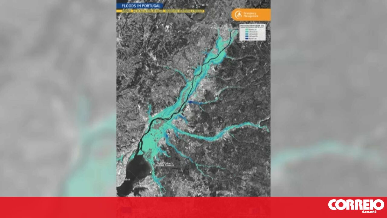 Imagem de satélite mostra dimensão de áreas inundadas junto ao rio Tejo