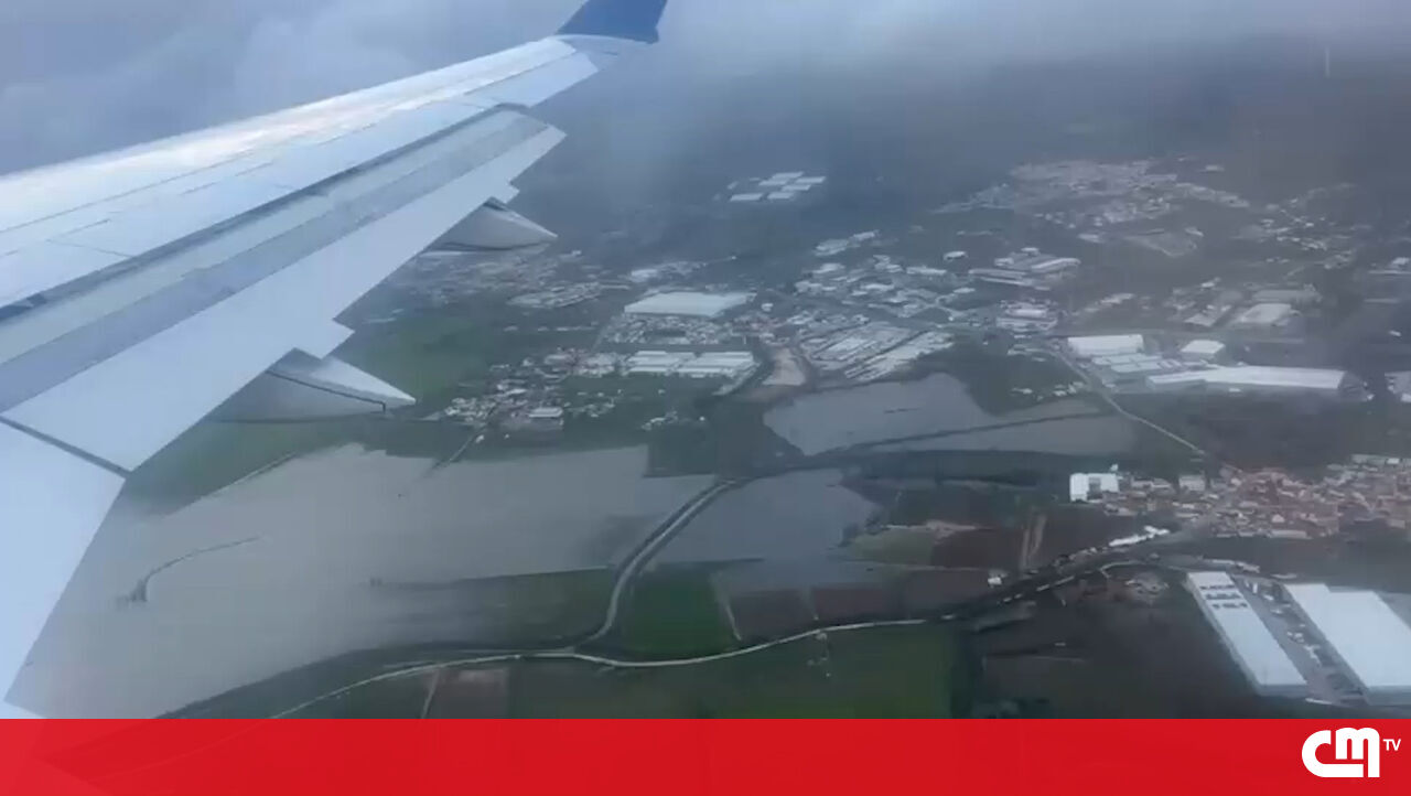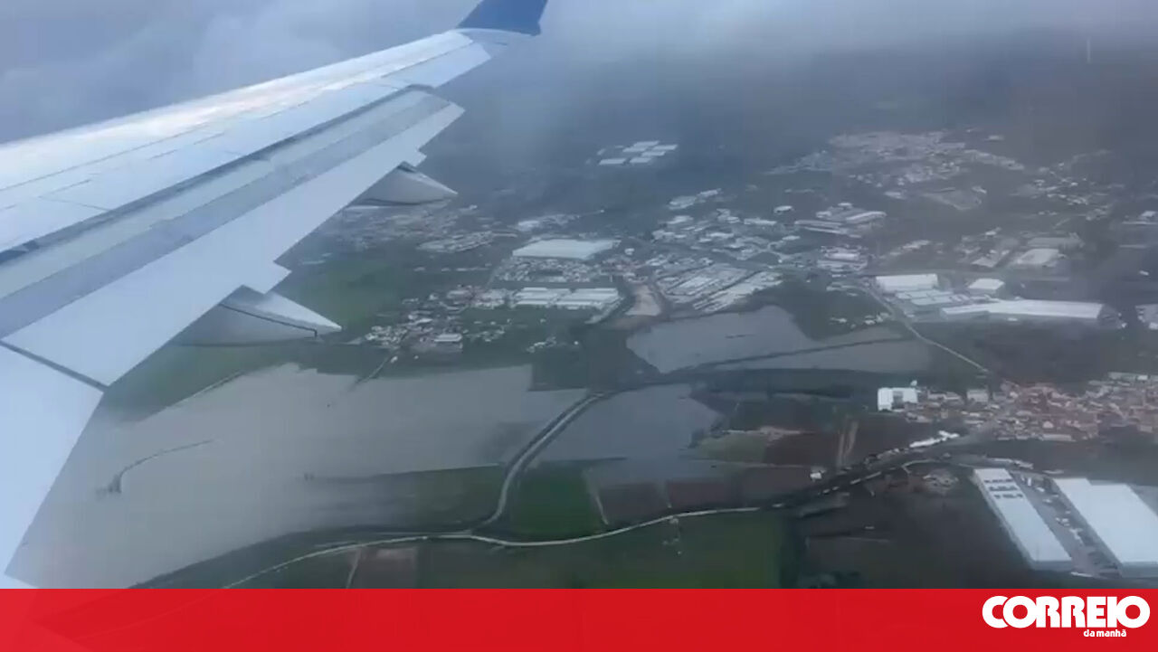 Imagens aéreas mostram extensão das inundações na zona do Tejo à chegada do Aeroporto de Lisboa