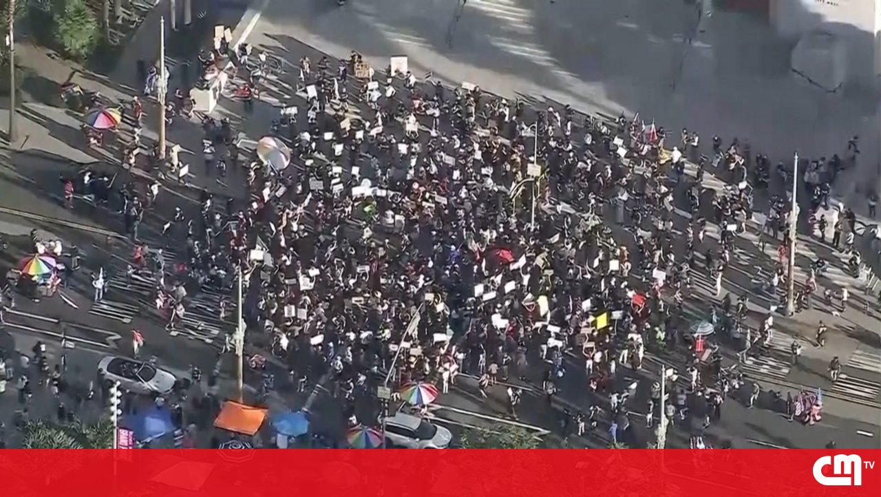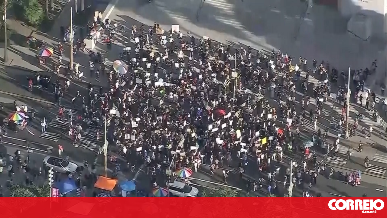 Imagens aéreas mostram multidão em protesto contra o ICE nas ruas de Los Angeles