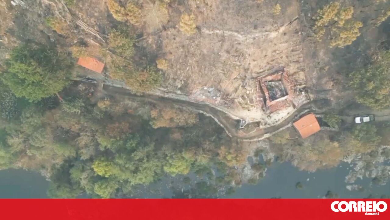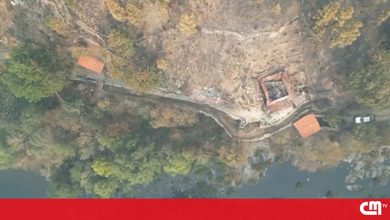 Imagens de drone mostram casa destruída pelas chamas em Castro Daire