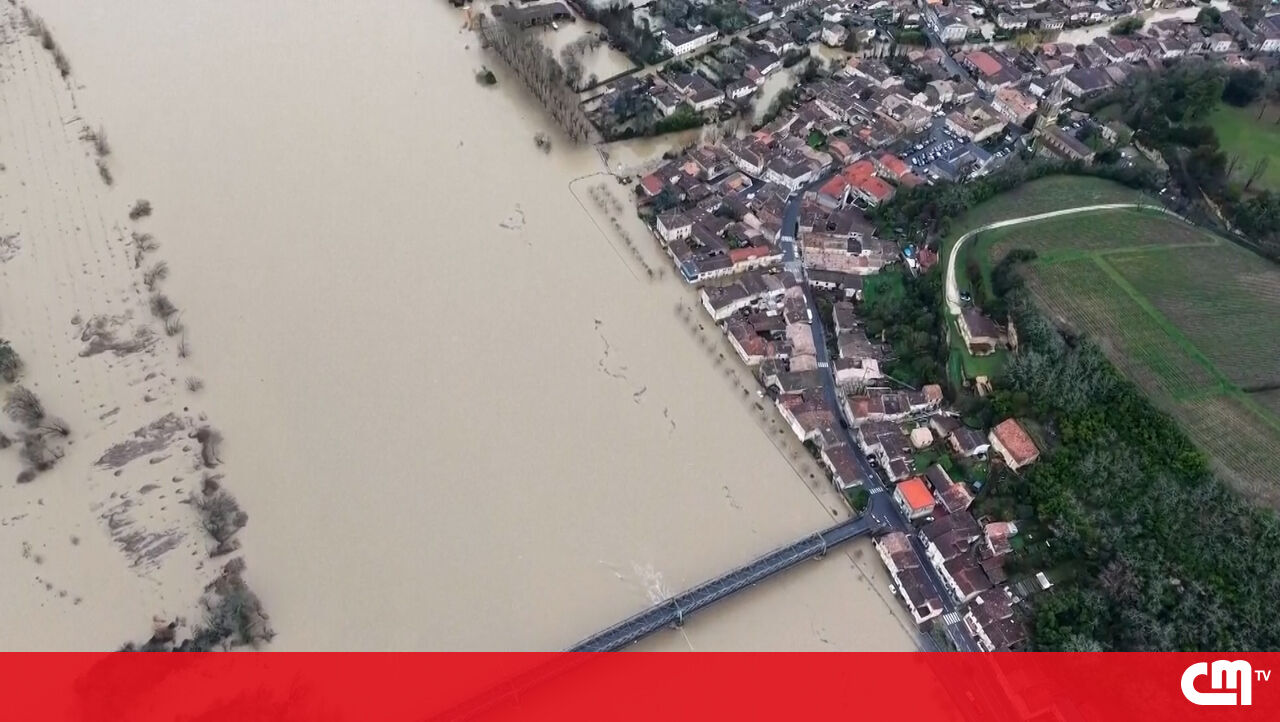Imagens de drone mostram casas e carros submersos devido às cheias no sudoeste de França