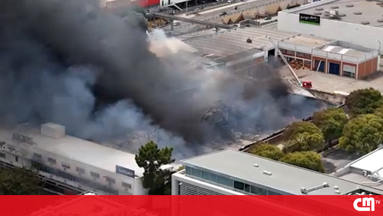 Um incêndio deflagrou, esta segunda-feira, na zona industrial do Porto, na empresa Auto Sueco.