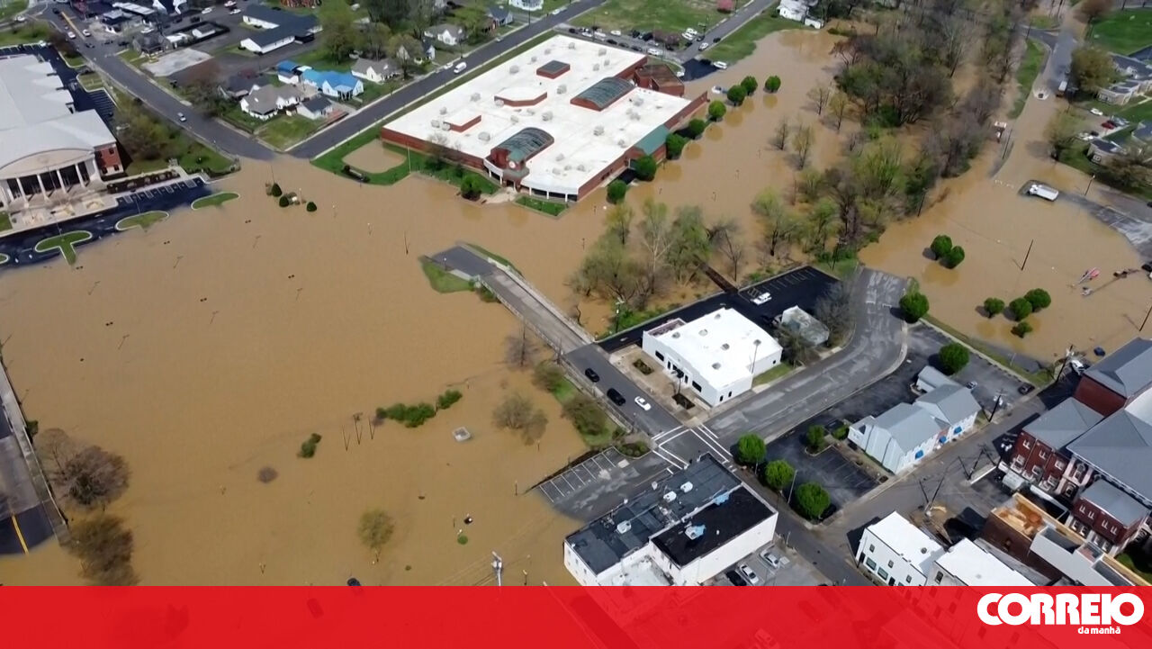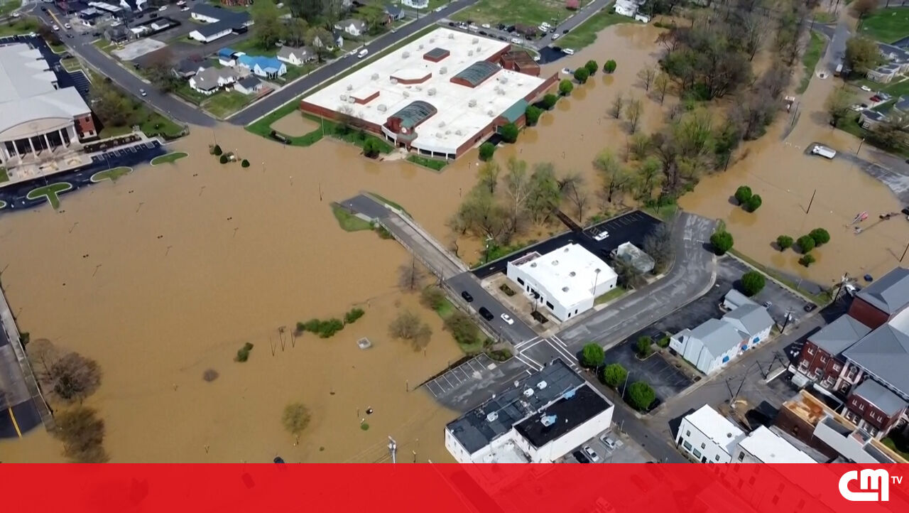 Imagens de drone mostram várias zonas totalmente inundadas no estado norte-americano do Kentucky