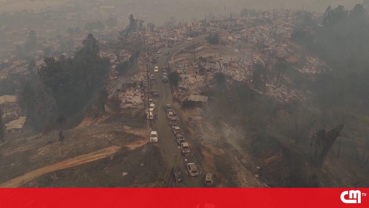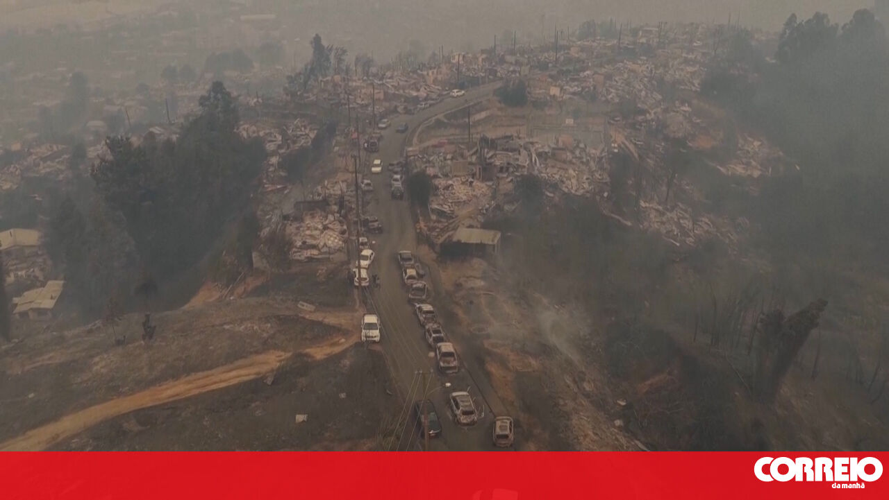Imagens de drone revelam a devastação provocada pelos incêndios florestais no Chile