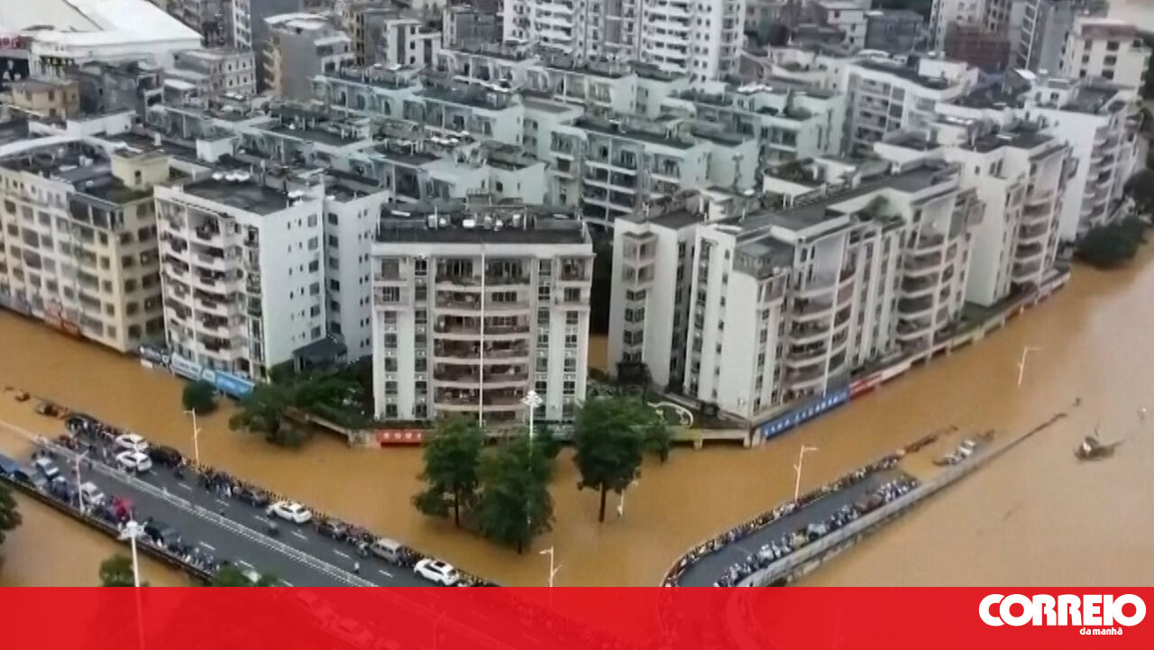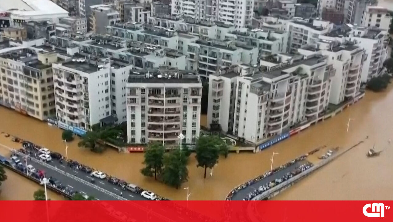 Imagens impressionantes mostram estradas totalmente inundadas após chuvas torrenciais no sul da China