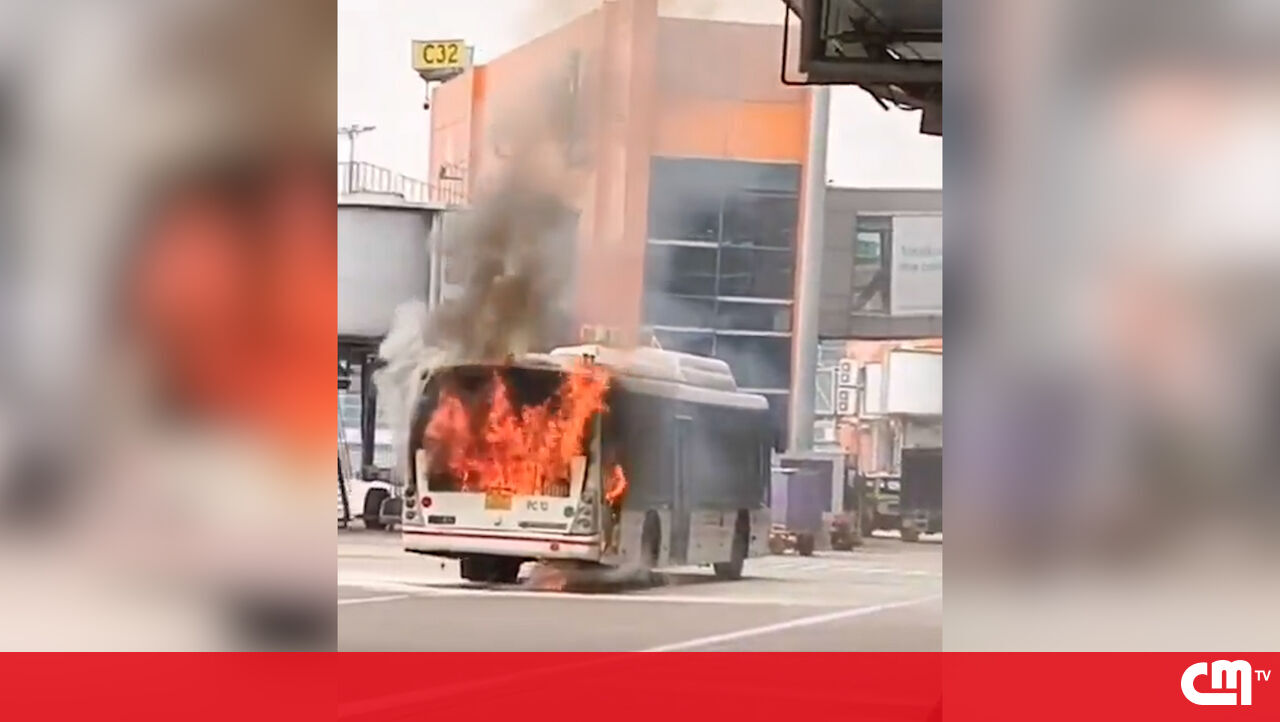 Imagens mostram autocarro em chamas em aeroporto da Índia