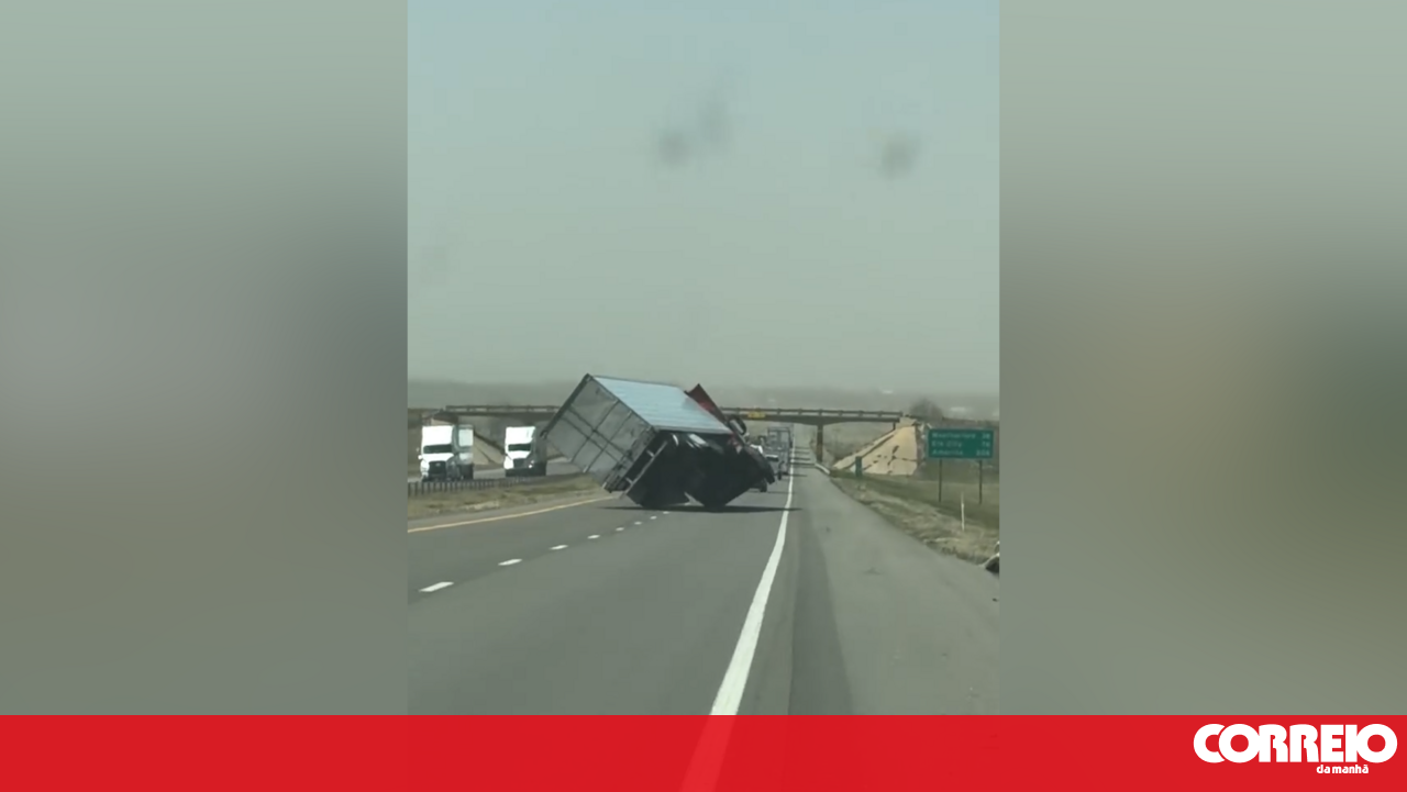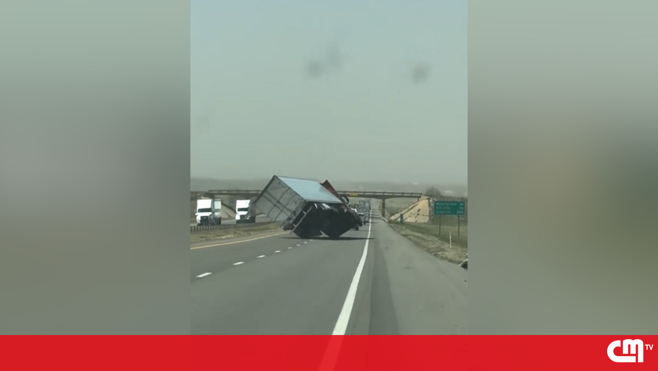 Imagens mostram momento em que camião tomba devido a ventos fortes nos EUA