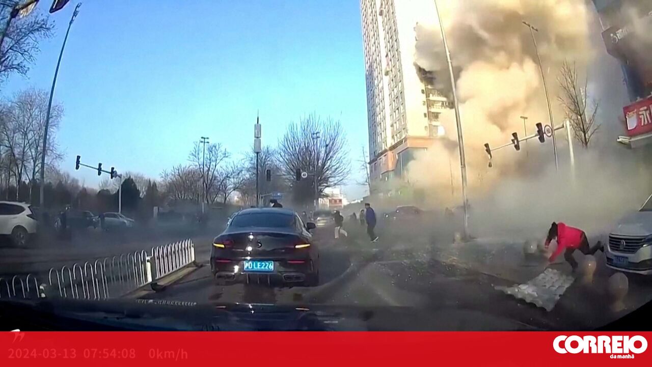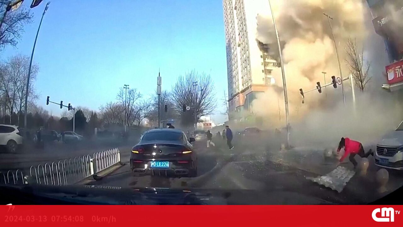 Uma câmara instalada num carro captou o momento em que um edifício no norte da China explode e uma mulher que estava na rua é atingida por destroços. A explosão fez um morto e 22 feridos.