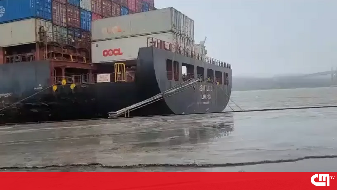 Imagens mostram navio com 260 metros a romper amarras antes de andar à deriva no Tejo