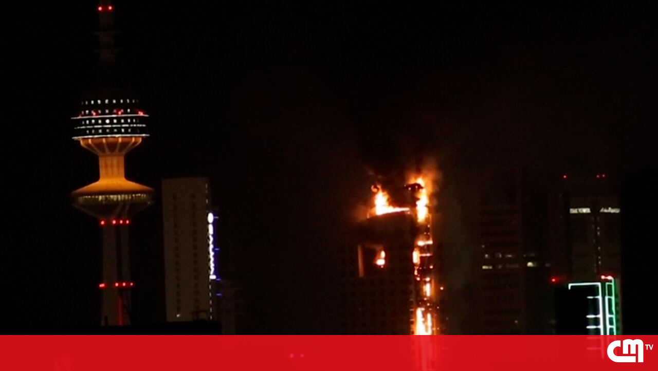 Um incêndio de grandes dimensões atingiu um edifício alto na Cidade do Kuwait durante a madrugada de domingo, enquanto o Kuwait enfrentava uma vaga de ataques com drones e mísseis atribuídos ao Irão.
