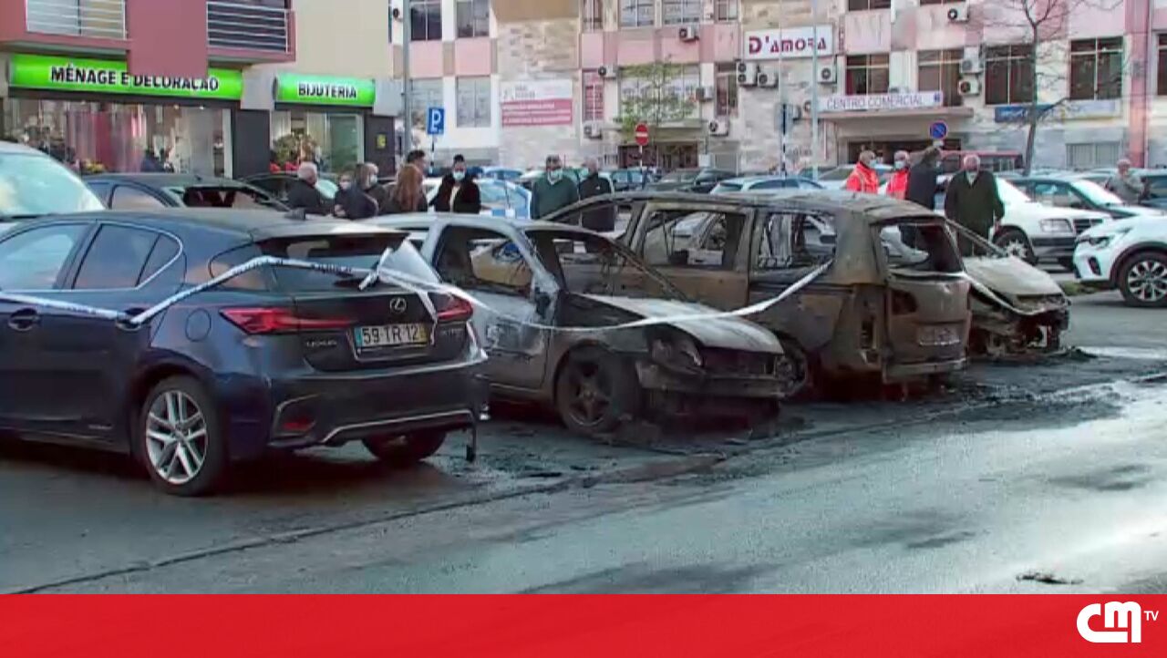 Incêndio junto a Centro Comercial destrói sete carros nas Paivas, Seixal. Veja as imagens
