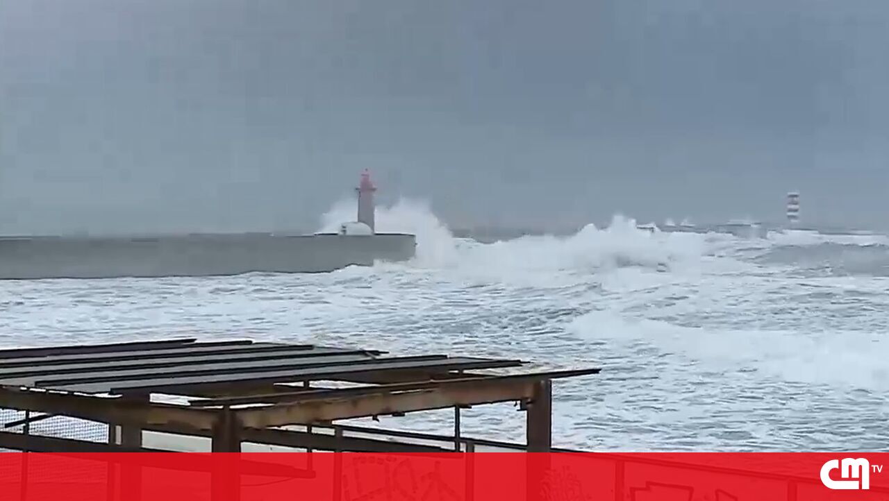 Câmara colocou barreiras de segurança junto à foz do Porto para impedir a circulação. Ondas podem chegar aos 10 metros.