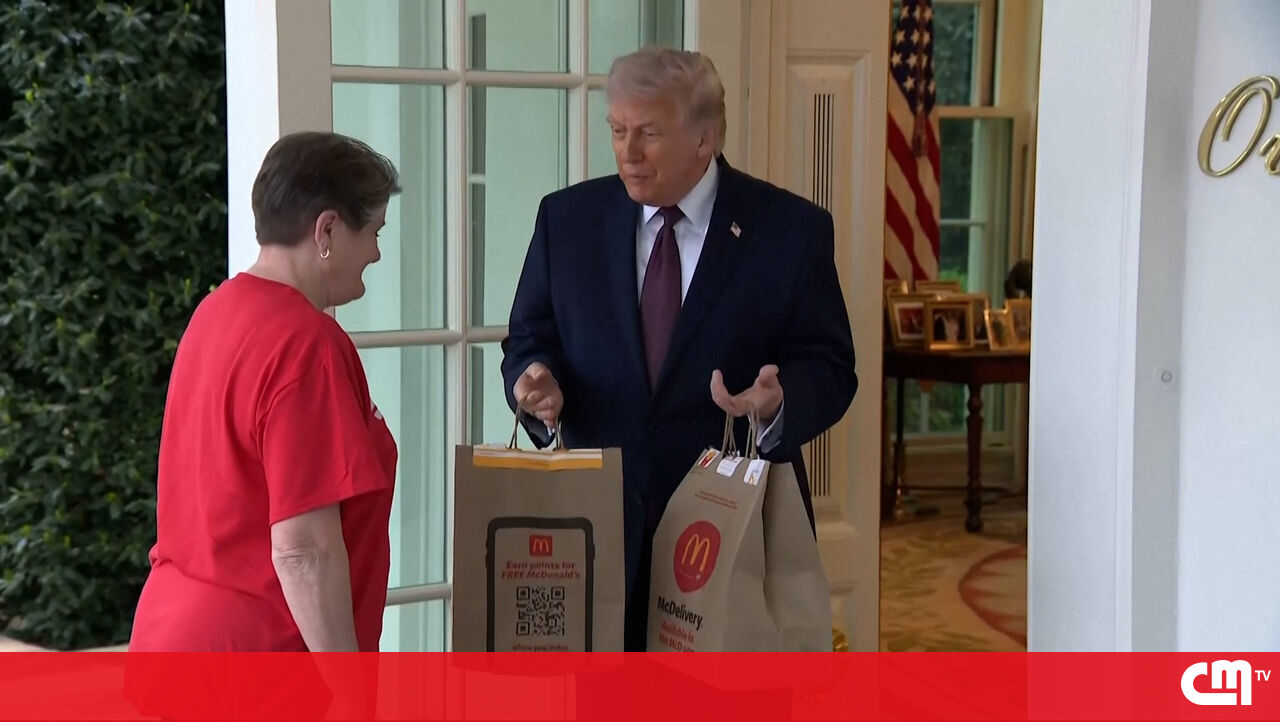 “Isto não parece encenado, pois não?”: Trump dá gorjeta de 100 dólares a estafeta por entregar McDonald’s na Sala Oval