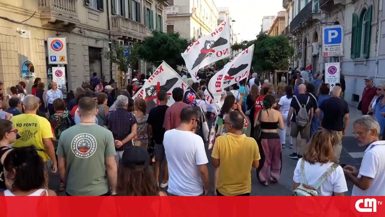 Protesto em Messina juntou milhares contra a construção da maior ponte suspensa do mundo. Temem impactos ambientais, sísmicos e máfias.