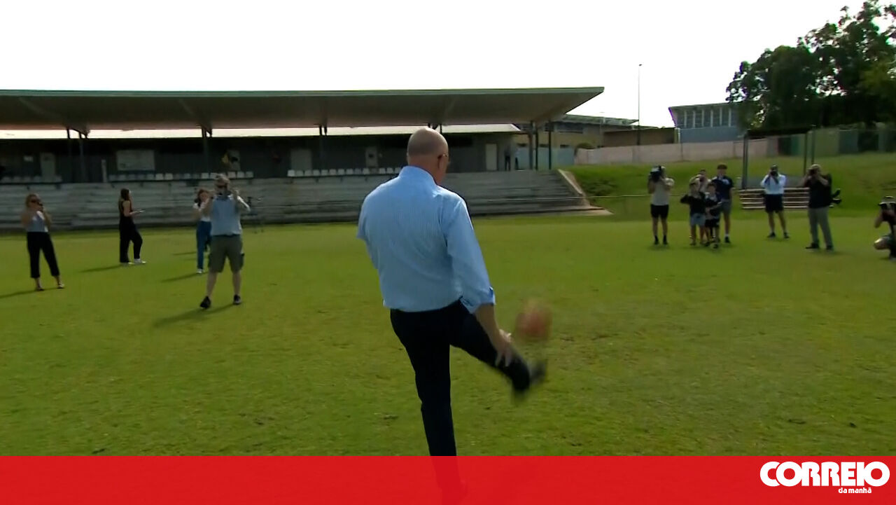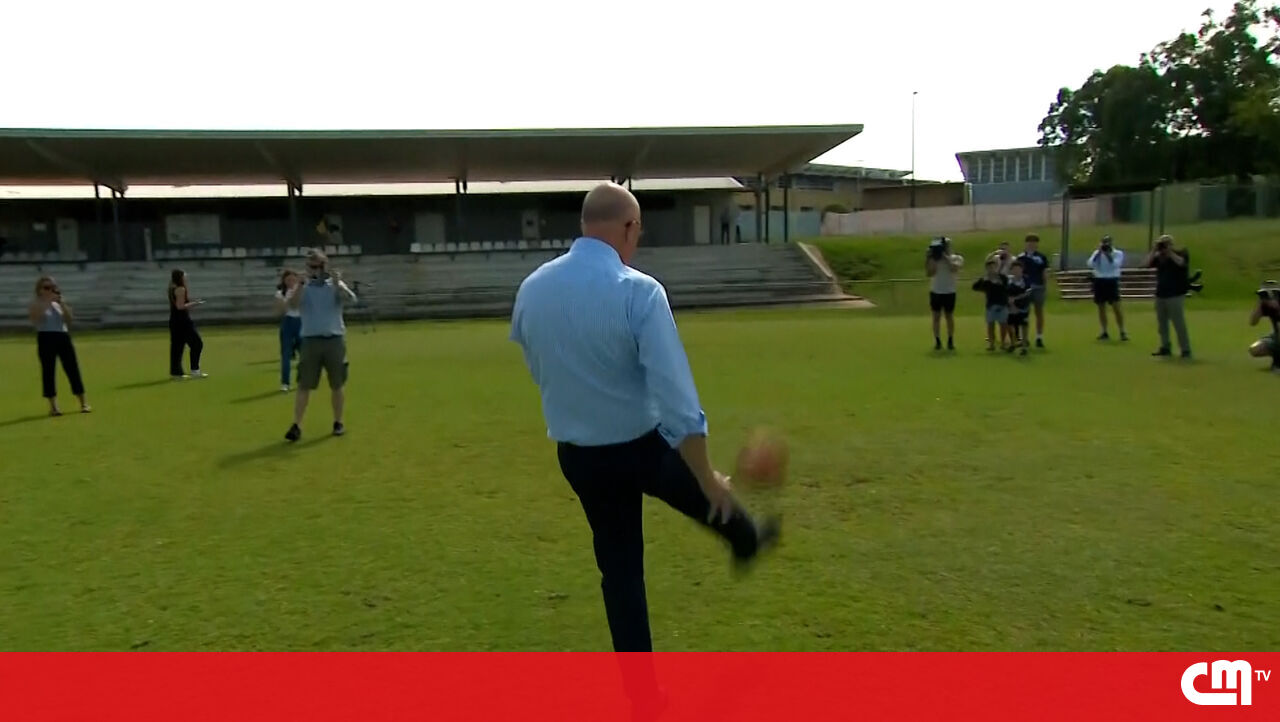 Líder da oposição australiana chuta bola para criança, falha o alvo e deixa operador de câmara a sangrar
