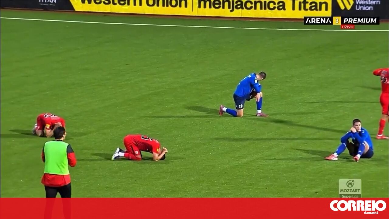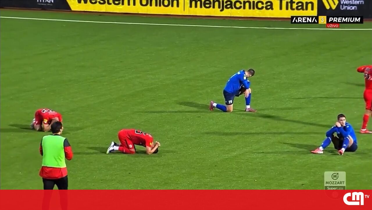 Luto na Sérvia: jogadores caem desesperados no relvado ao saberem da morte de treinador e jogo é interrompido